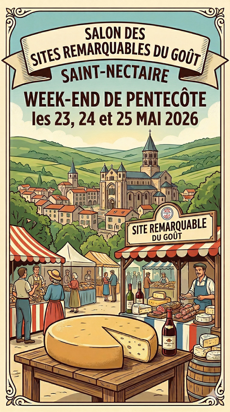 Le marché des Sites Remarquables du Goût de Saint-Nectaire se déroulera le week-end de Pentecôte les 23, 24 et 25 Juin 2026